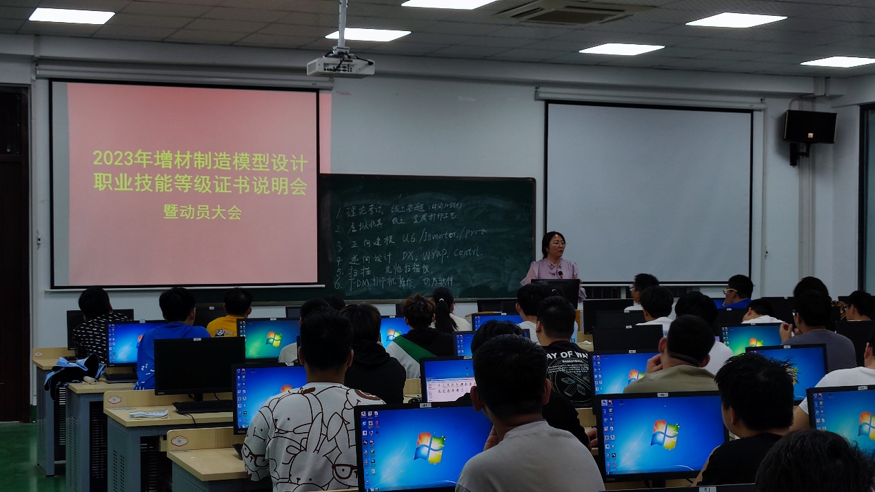 为更好的贯彻落实《关于深化现代职业教育体系建设改革的意见》和《关于在院校实施“学历证书+若干职业技能等级证书”制度试点方案》,推动2023年度增材制造模型设计职业技能等级证书考核工作顺利开展,智能制造学院于5月17日举行“增材制造模型设计X证书”宣讲动员大会,材料成型教研室主任马丹丹老师、专业负责人高翔老师主持会议,2021级学生参加此次会议。