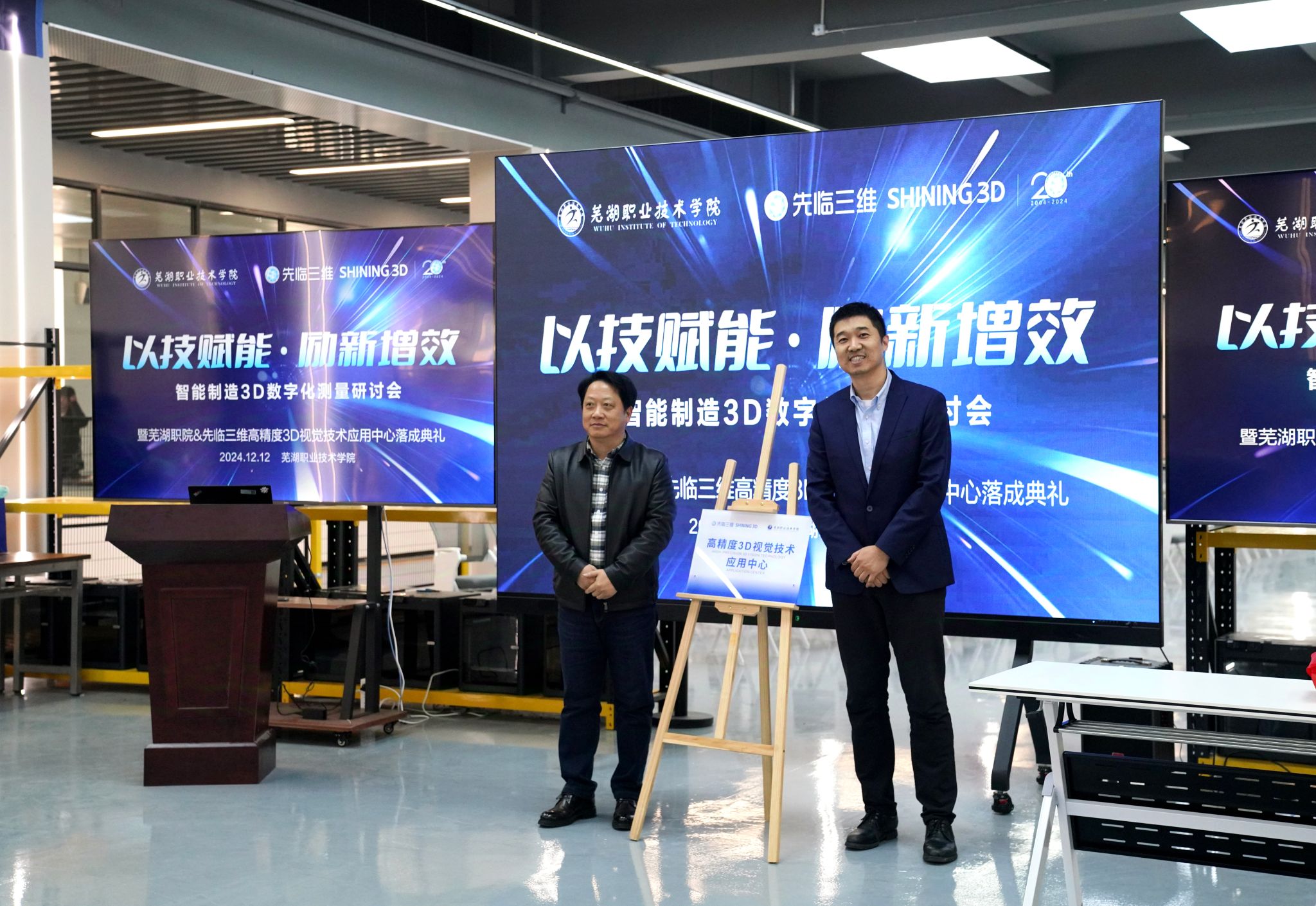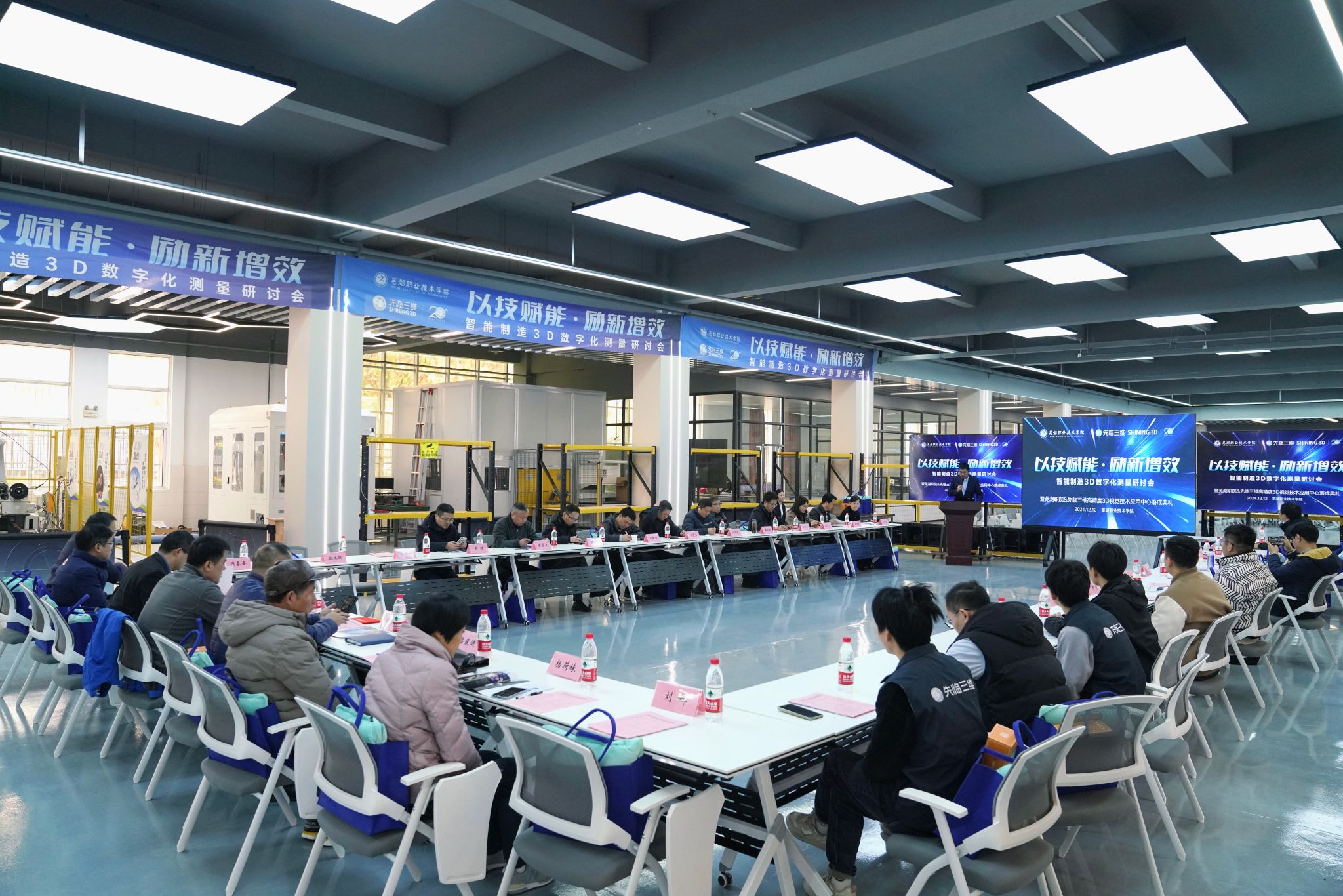 12月12日,我校在银湖校区智能制造产教融合实践基地举办“以技赋能·励新增效 智能制造3D数字化测量研讨会暨先临三维&芜湖职院高精度3D视觉技术应用中心落成典礼”