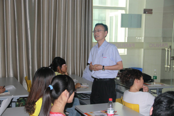 在宣讲会开始前,牛宝林院长陪同客人参观了数控实训基地、精密测量中心、FANUC技术中心等,Ismael Martinez先生表示很震撼,他们本来还想到其他地方的高校寻求合作,没有想到在芜湖就有这么好的学校,他对我们的教学理念和教学方法表示非常认同。