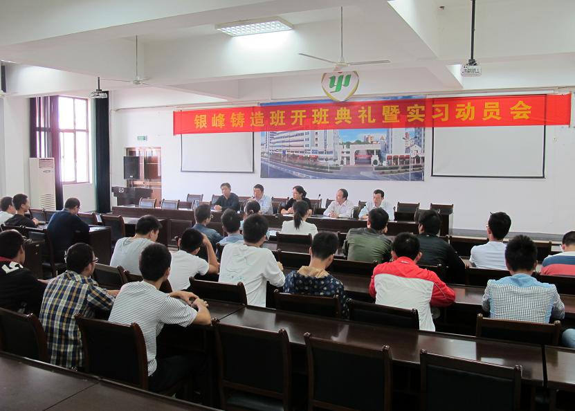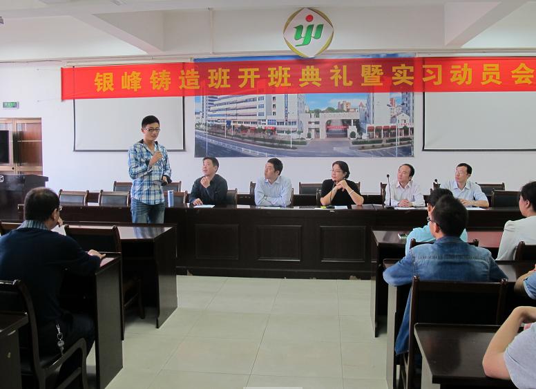 10月10日上午9时,机械工程学院在图书馆2楼报告厅举办首届银峰铸造班开班典礼暨实习动员会,出席此次会议的领导及嘉宾有银峰铸造公司人力资源部总监韩晓慧、学院教务处处长孙晓雷、校企合作办公室主任王世友、机械工程学院院长牛宝林、副院长杨杰及相关专业教师。