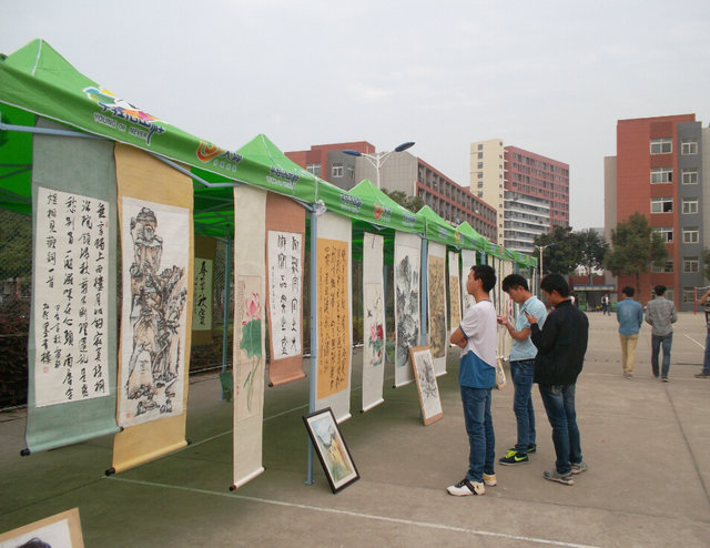 到场嘉宾有我院朱小平老师,李佳睿老师,王学超老师,机械系学生会主席,团委副书记,安师大美协负责人及学校部分社团负责人。开幕式上部分老师和安师大美协负责人致辞,均对这次活动表示大力支持和热烈祝贺。本次活动参展作品有百余副,内容包括书法和绘画。这些作品主题鲜明,内容丰富,其书法作品或形式工整隽秀,或挥洒自如,或浑然古朴,具有很强的思想性和艺术性。