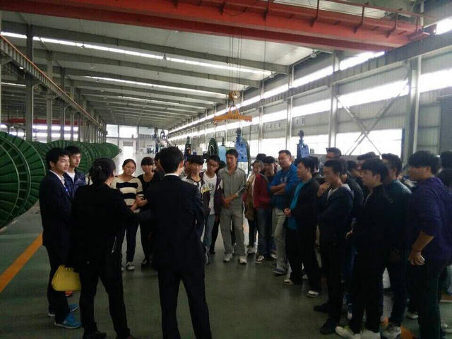 陈建勋和童效俊两位工程师把自己在工作中所积累的工作经验和知识分享给了同学们,并在车间里把每台设备工作原理和每道工序的工艺流程都很细致的讲给同学们听,同学们也把自己在理论学习和实习中遇到的问题向两位工程师进行求教,两位工程师对每位同学的提问都做了一一解答。让同学们对电线电缆知识有了更全面的了解。
