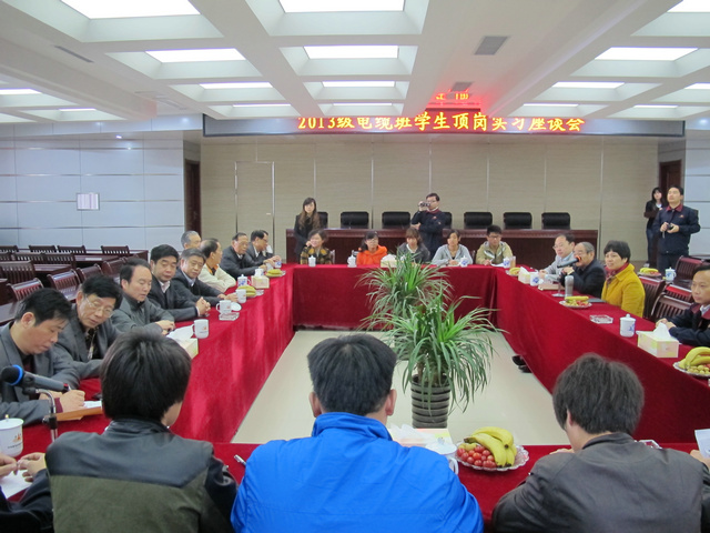座谈会上,无为线缆协会副会长未代龙对学生在实习期间的表现表示肯定,对线缆学院今后的发展充满信心。安徽华菱电缆集团有限公司李总和闵总介绍电缆行业的情况及企业面临的市场困难和电缆方面人才的紧缺的现状,建议同学们珍惜现在、刻苦学习,以后进入岗位要爱岗敬业。无为县县委常委、副县长靳立刚分析了就业难问题和教育改革问题,建议学校与企业建立更完善的顶岗实习制度,多多交流,从企业所需方向培养人才,建立校企合作实训基地;希望学生牢固掌握理论知识,并且理论与实践相结合,不断提高自己丰富自己,企业欢迎学生前来就业。芜湖市企业联合会会长、芜湖市原人大常委会副主任程晓苏为介绍电缆在工业生产中的重要性和电缆材料方面的问题。希望学生们应该珍惜实习机会,认真的去学习,并建议把线缆学院由一个班建立成多个专业。