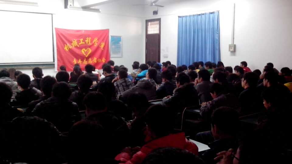 12月4日中午12点20,机械工程学院青年志愿者协会举办的志愿者宣誓大会在机械楼三楼310、311两个教室拉开帷幕。参加宣誓大会的有:机械工程学院团委学生会主席、各分院青协代表、院青协会长和机械工程学院2013级全体志愿者。
