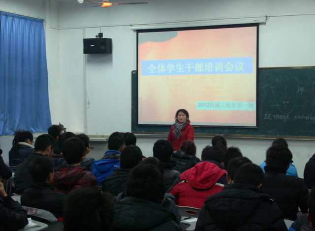 2月10日,机械系组织了全体学生会成员及各班班长、团支书约200人的学生干部培训会议。