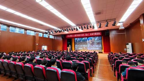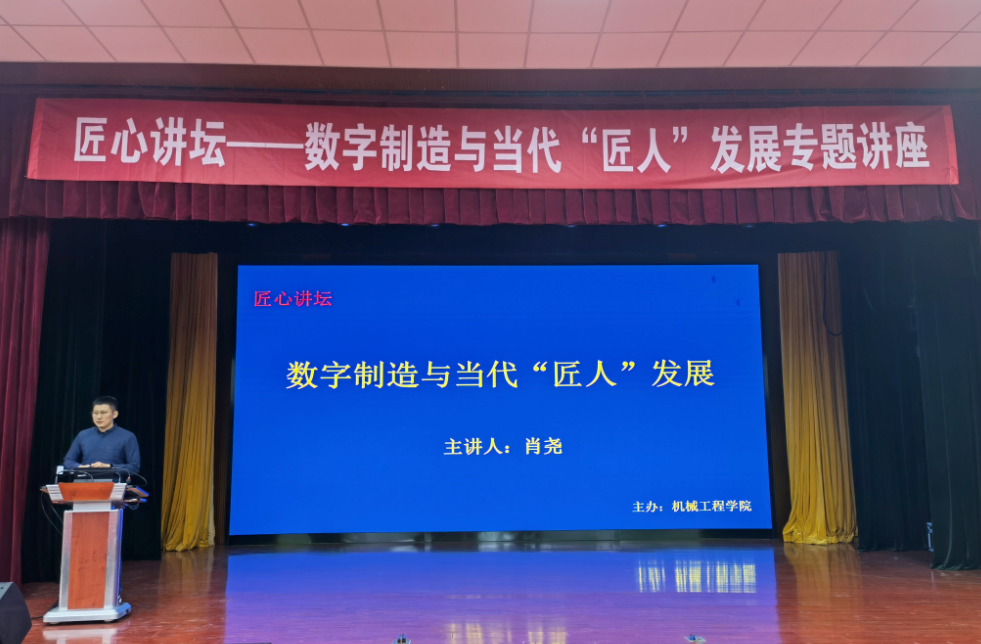 为深入落实党建工作“找差距、抓落实、提质量”专项行动,体现教师党员全心全意为学生办实事的宗旨,4月7日,机械工程学院和图书馆特邀请欧特克软件(中国)有限公司中国教育经理、中国机电一体化技术应用协会职业教育分会副秘书长肖尧,于北校区大礼堂举办关于“数字制造与当代匠人发展”的专题讲座。学生听讲座报名、签到均以“第二课堂成绩单”为平台,近三百八十名师生聆听本次讲座。