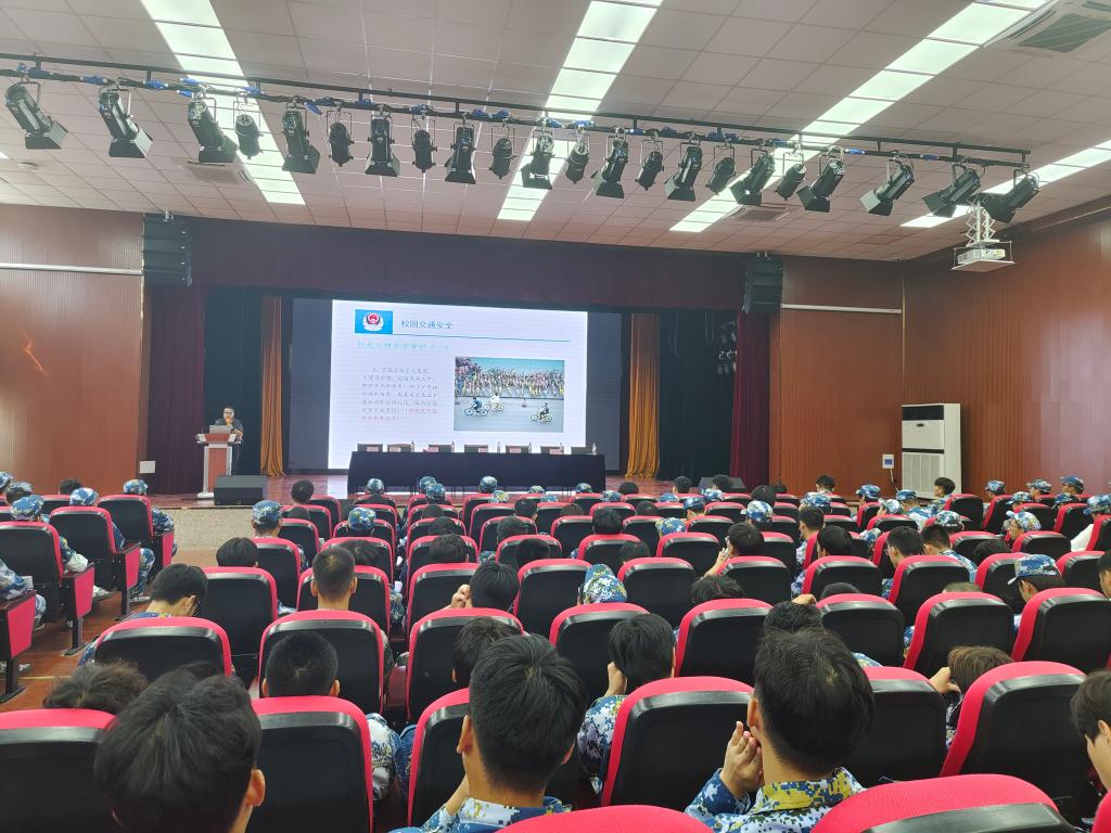 开学典礼之后,保卫处商伟副处长为全体新生做了新生入学安全教育讲座,为新同学传授如何应对新问题的知识、能力和技能,树立安全意识,提高安全素质,为学生成长成才提供更加安全稳定的环境。(图/叶青文/曹晓芹 审/林宗良)