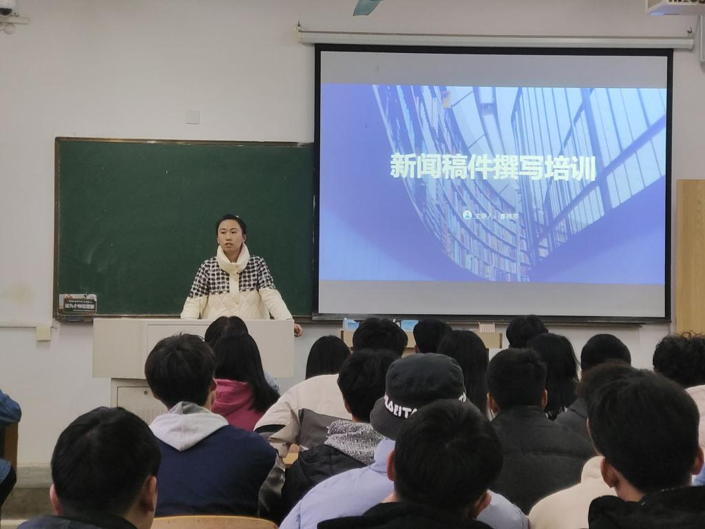 培训会上,曹晓芹首先明确了新闻具有真实性、思想性、时效性等特点。接着对如何写新闻稿进行了详细、全面的讲解。她分别从新闻稿的撰写原则、撰写内容、撰写结构等方面展开了详细的阐述,并结合各部门的工作特点,总结撰写新闻稿的具体要领,剖析新闻稿撰写中的写作问题,并举出身边的实例,让同学们认识到撰写新闻稿的经验对于以后工作的作用,引起同学们的重视。随后曹晓芹给同学们展示了学校优秀新闻稿,并建议同学们在学校官网上多多学习优秀新闻,她指出,写出新颖的新闻稿往往是经过千锤百炼,只有不断地练习才能一步一个脚印地提升写作水平。