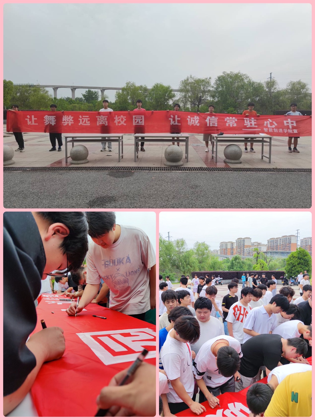 为进一步加强学风建设,严肃考风考纪,强化学生诚信意识,培养学生诚信品质,创造和谐诚信校园,6月1日中午,智能制造学院在学院广场举行诚信考试签名活动,该学院各年级学生纷纷响应,并亲手写下了自己的承诺。