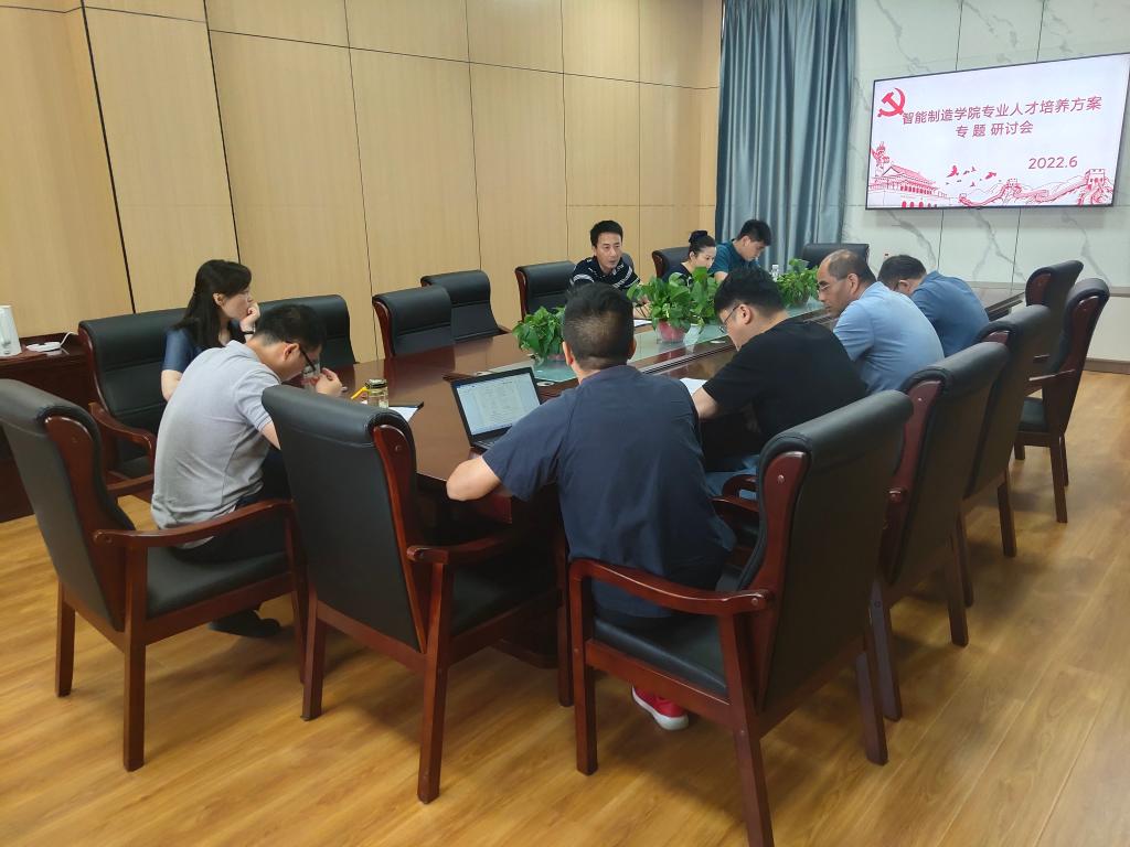 为提升人才培养质量,充分做好“三全育人”各项工作,进一步提高专业人才培养方案制订的科学性和指导性,规范人才培养过程,突出学校特色和专业特色,6月10日,智能制造学院组织开展2022级各专业人才培养方案修订工作专题研讨会。会议由智能制造学院党总支宣传委员、副院长朱强主持,教工党支部书记胡俊前、学院各教研室主任和专业带头人、教学秘书参会并讨论。