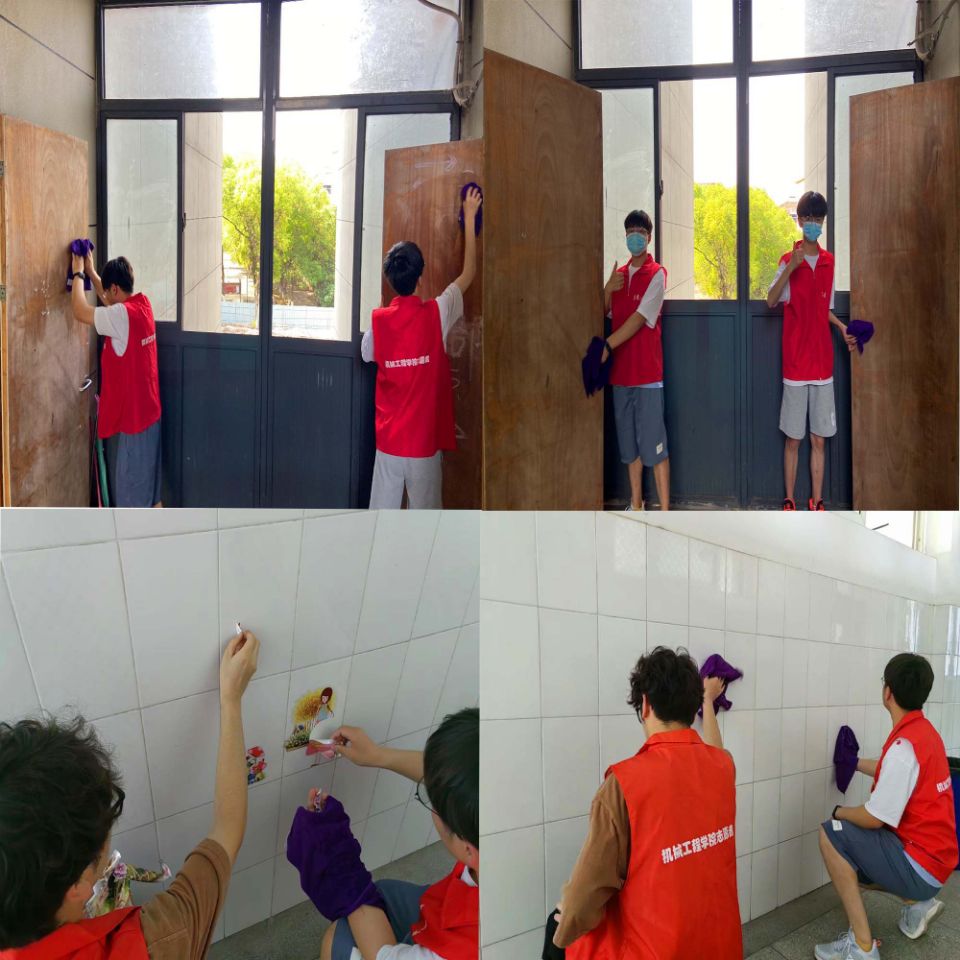 活动中,身着红色志愿者服的志愿者们手拿扫帚、簸箕,对教学楼教室、楼梯、走道等区域的垃圾、纸屑等进行清理打扫。对广告张贴、垃圾杂物、乱堆乱放等进行了全方位的清理,志愿者们不怕脏、不怕累,不遗漏任何一个角落,经过两个小时的大清扫,所见之处的环境面貌焕然一新,他们给我们展示的是大学生奉献、友爱、互助、进步的志愿精神。