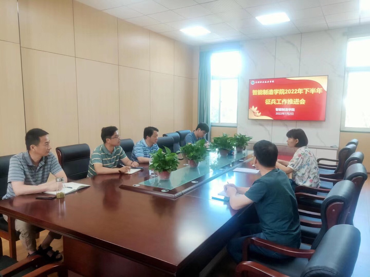 为深入贯彻落实学校2022年下半年征兵工作推进会会议精神,智能制造学院7月2日下午召开了毕业生征兵工作推进会。学院总支班子成员和负责征兵工作的老师参加了会议。