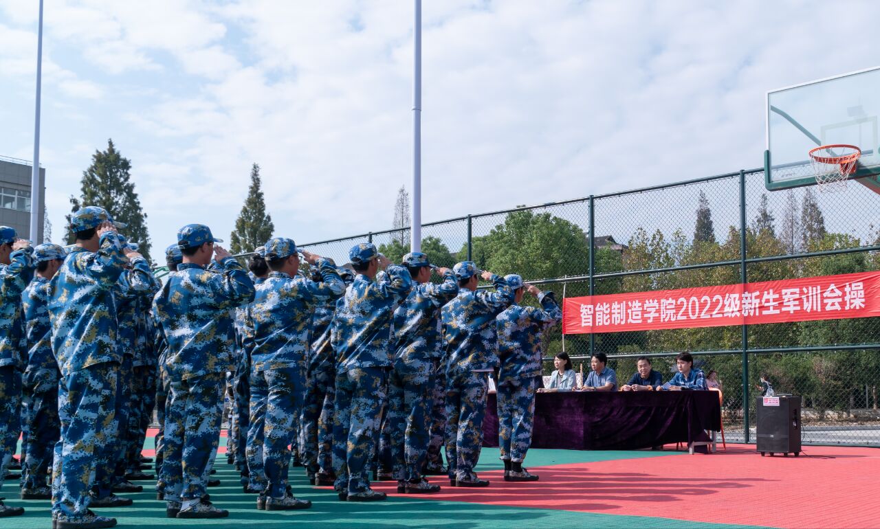 学军人意志,扬青春激情。2022年9月26日下午两点三十分钟,智能制造学院2022级军训队列会操暨表彰大会在篮球场举行。学院院长戴晓东、党总支副书记计荣、林宗良,学工科长江晓,全体辅导员参加了新生的军训会操暨表彰大会。