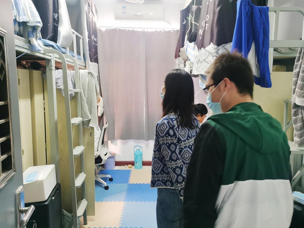走访过程中,辅导员详细询问学生们近期网课学习情况以及心理状态和困难诉求,表示会尽全力做好服务保障工作。同时,叮嘱同学们时刻紧绷疫情防控这根弦,要严格遵守学校防疫规定,积极主动做好每日个人体温自测,严格落实“每日健康打卡”、核酸检测等常态化防疫措施;在日常生活中要加强身体锻炼,养成良好生活习惯,做好个人防护,勤洗手、常通风、戴口罩,积极配合学校做好各项防控工作;鼓励同学们疫情期间也要保持良好的学风,不断夯实专业基础,提高理论知识水平。