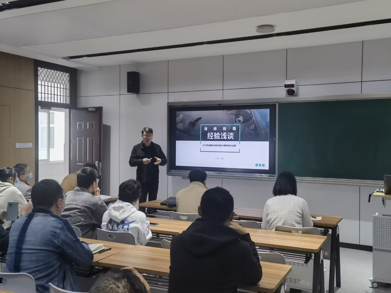 交流会上,朱强首先介绍了我院2022年教学能力大赛的基本情况,鼓励更多的教师参与进来,实现“以赛促教、以赛促学、以赛促改、以赛促建”的目标。高翔老师结合自身的参赛经历与经验,从研读比赛文件、组建团队、决定选题、重构课程、撰写文档、拍摄视频等方面进行了深入解读。杨亚老师分享了教学设计思路,包括教学目标、考核方式、教师教法、学生学法、教学资源等方面内容。杨群老师对视频教学内容的选择、教学场景的布置以及信息化手段使用等方面做了详细讲解。