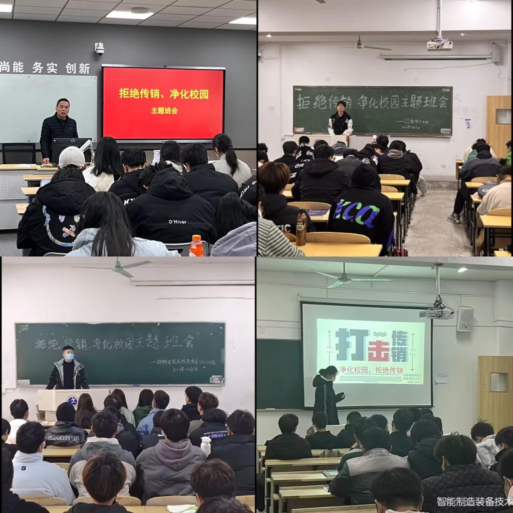 为进一步营造纯净校园环境,增强广大学生对传销的辨别能力,切实保护学生的财产生命安全。12月4日下午,智能制造学院组织全院同学召开了“拒绝传销,净化校园”主题教育班会。