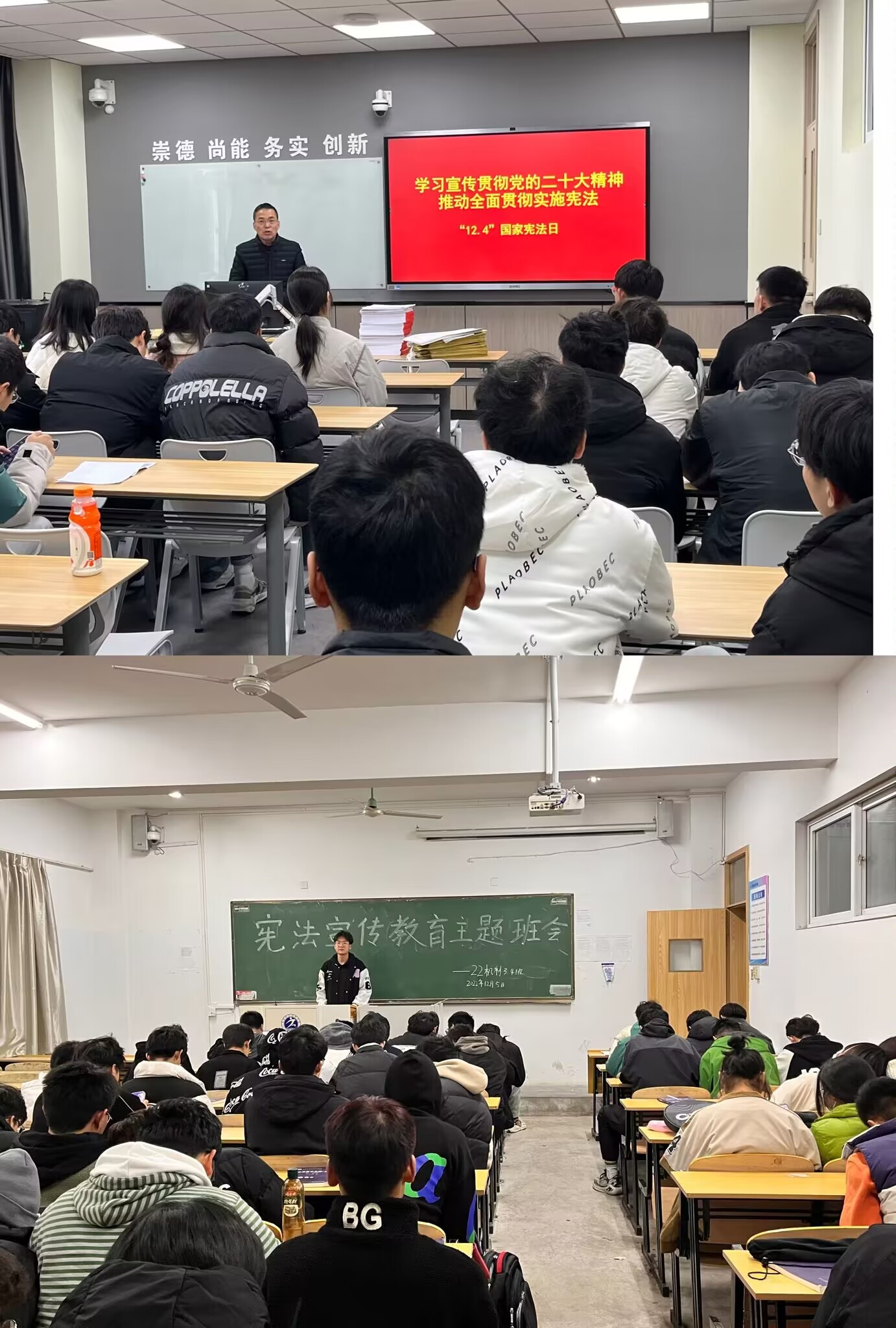 今年12月4日是第九个国家宪法日,为深入学习贯彻党的二十大精神,全面贯彻落实习近平法治思想,弘扬宪法精神,智能制造学院组织开展了以“学习宣传贯彻党的二十大精神,自觉维护宪法权威”为主题的宪法宣传教育主题班会活动。
