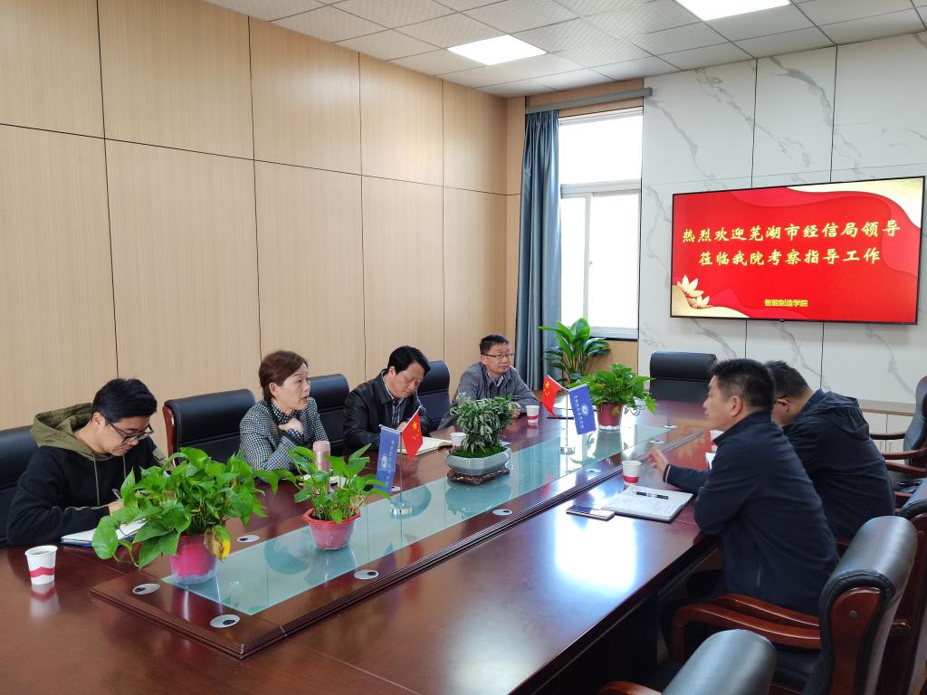 3月14日上午,芜湖市经济和信息化局总工程师胡明、投资与技术创新科副科长奚家刚莅临我校北校区进行考察指导交流,参观了我校先进自动化技术实训中心、智能口罩生产包装线、智能焊接实训室、数控加工中心、工业机器人实训室、工业仿真实训室等数字化、智能化实验实训场所,并在智能制造学院会议室与我校领导开展了政校联动交流会。