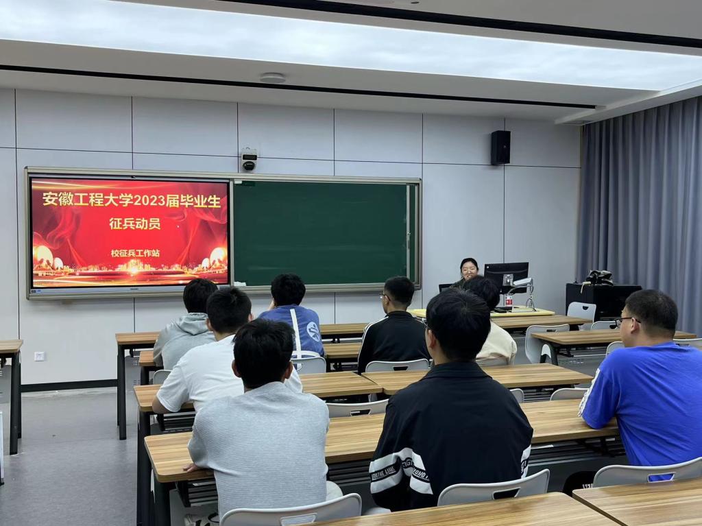 为做好联合培养本科生征兵宣传工作,鼓励应届毕业学生积极应征入伍,更好地实现大学生建功军营、成长成才的人生价值。近日,安徽工程大学征兵工作负责人到智能制造学院开展了春季征兵政策宣讲会。