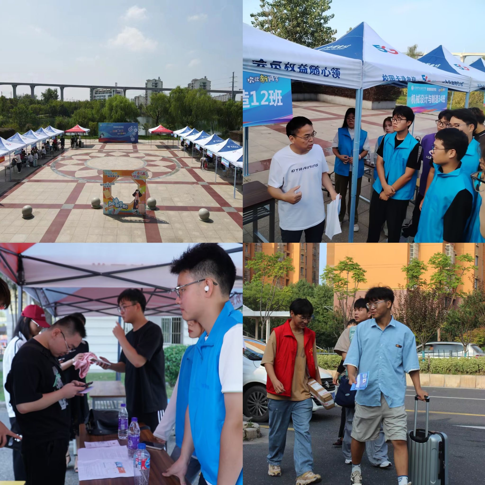 9月8日旭日东升,智能制造学院迎新工作在惟实楼前广场正式拉开帷幕。迎新现场高挂着迎新横幅,屏幕上播放着学校和智能制造学院宣传片,学院组织师生党员、辅导员和团委、学生会、党章班等学生组织成员以及班级骨干、新生班主任助理等组成的志愿者团队做好各项迎新工作。志愿者们积极奔走在迎新的第一线,第一时间接过新生手中沉甸甸的行李,解答新生们的疑惑,介绍学校的校史校貌、宿舍食堂、教学实验场所等,帮助新生同学快速熟悉校园环境,积极主动引导每一位新生顺利办理交费、宿舍登记、学籍注册等一切入学手续,以热情、周到、及时、贴心的服务为新生和家长提供现场咨询、位置导向、生活资讯等引导服务。