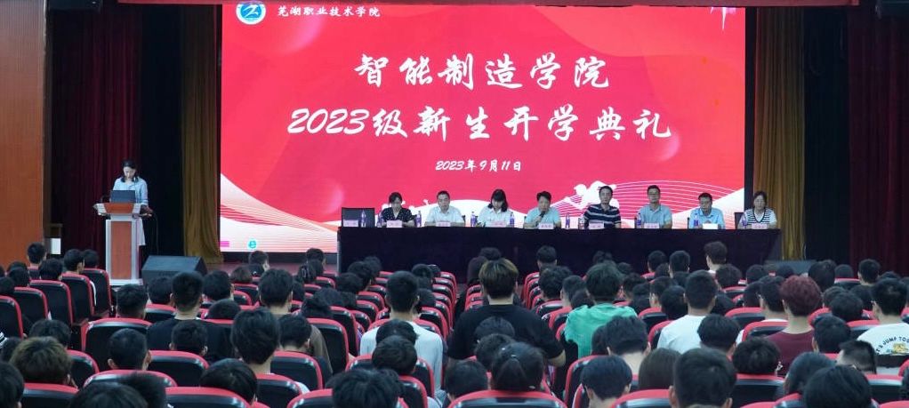 9月11日上午,智能制造学院2023级新生开学典礼在芜湖职业技术学院银湖校区大礼堂隆重举行。来自五湖四海的新生怀揣梦想与希望,开启了筑梦起航的新篇章。智能制造学院党政班子成员、教研室主任、新生辅导员出席典礼,典礼由学工科长江晓主持。