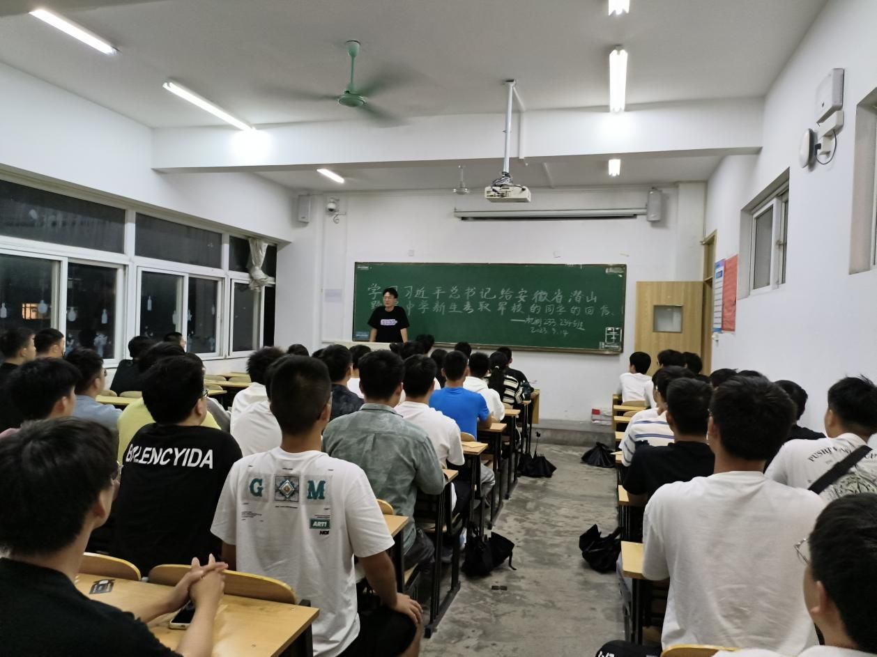 入学教育期间,学院通过班会课等形式组织学生学习习近平总书记给安徽省潜山野寨中学新考取军校的20名同学的回信,勉励新生坚定理想信念,厚植家国情怀。9月13日,副院长朱强为新生讲授“开学第一课”,带领新生正确认识大学生活,教育引导学生心怀家国理想,勤奋耕耘学业,奋力成长为新时代有为青年。