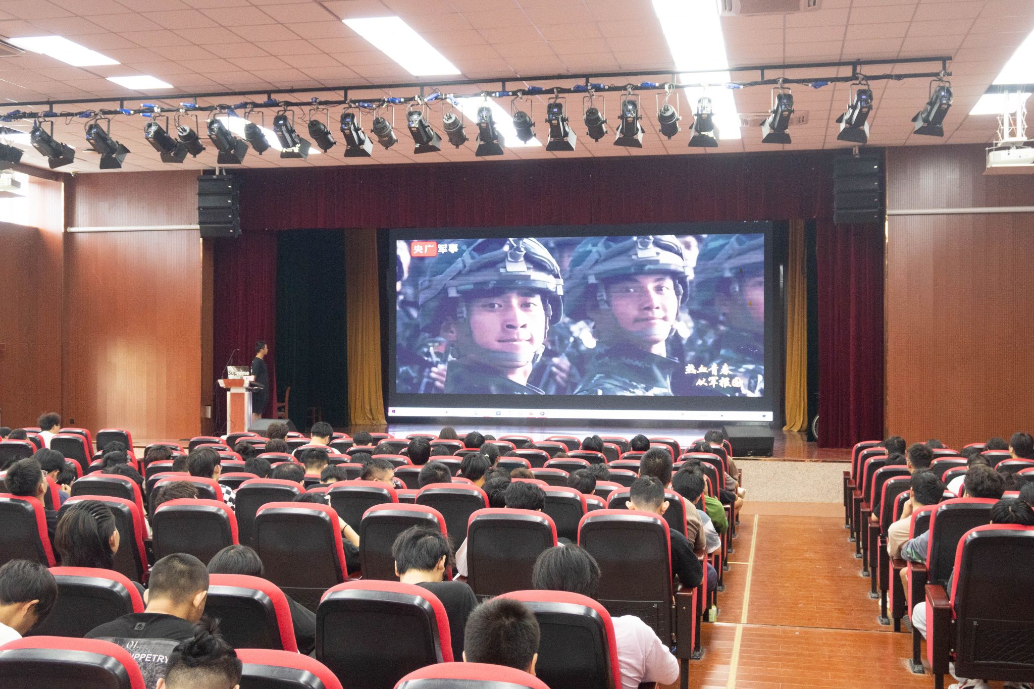 为鼓励2024届毕业生积极参与应征入伍,提高兵员征集质量,推进国防和军队现代化建设,增强大学生们的自我奋斗精神。智能制造学院近日在银湖校区大礼堂开展关于征兵入伍的宣传讲座。此次讲座的主讲人2022级数控技术专业的退伍复学学生代表李劲。