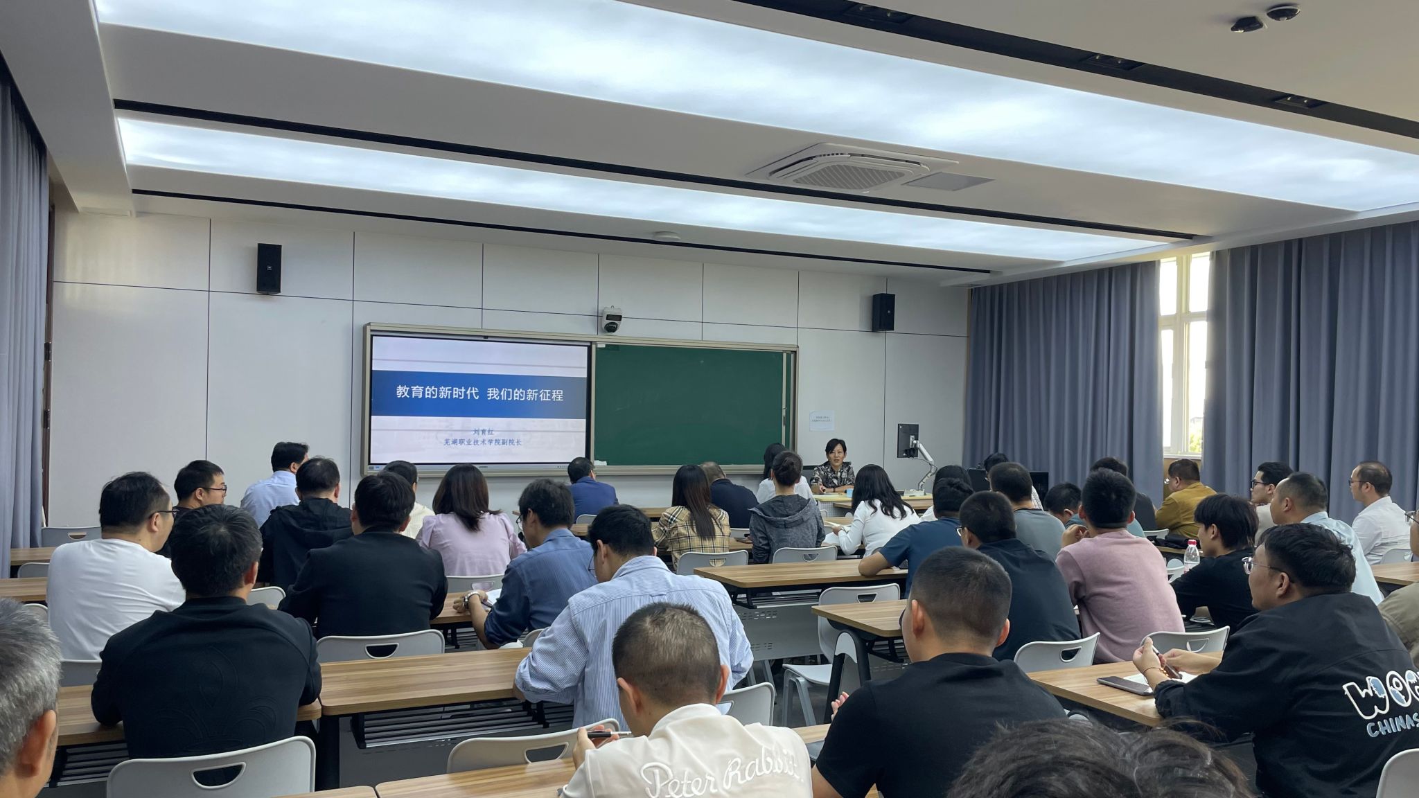 调研结束后,刘育红为全院教职工开展了一场主题为“教育的新时代 我们的新征程”专题讲座。她从“党的二十大报告关于教育的新提法”、“习近平总书记关于教育的重要论述”、“加快构建高质量的教育体系”几个方面进行了剖析讲解,以“跳出职业教育看职业教育”的视角,让老师们全面、系统的理解了党的二十大报告关于教育的新思想、新战略、新要求,并对教育强国战略和职业教育的发展进行了重点阐释。