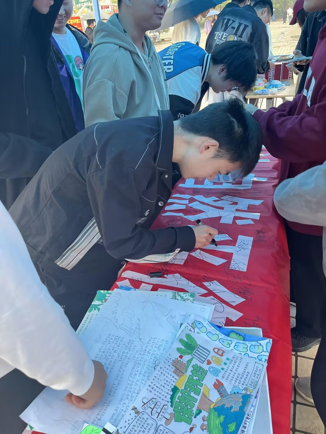 为提高师生环保意识,智能制造学院易班工作站近日在食堂门前广场上举办了一场以“保护生态环境”为主题的活动。活动方式以环保手抄报展示和保护生态环境签名为主。