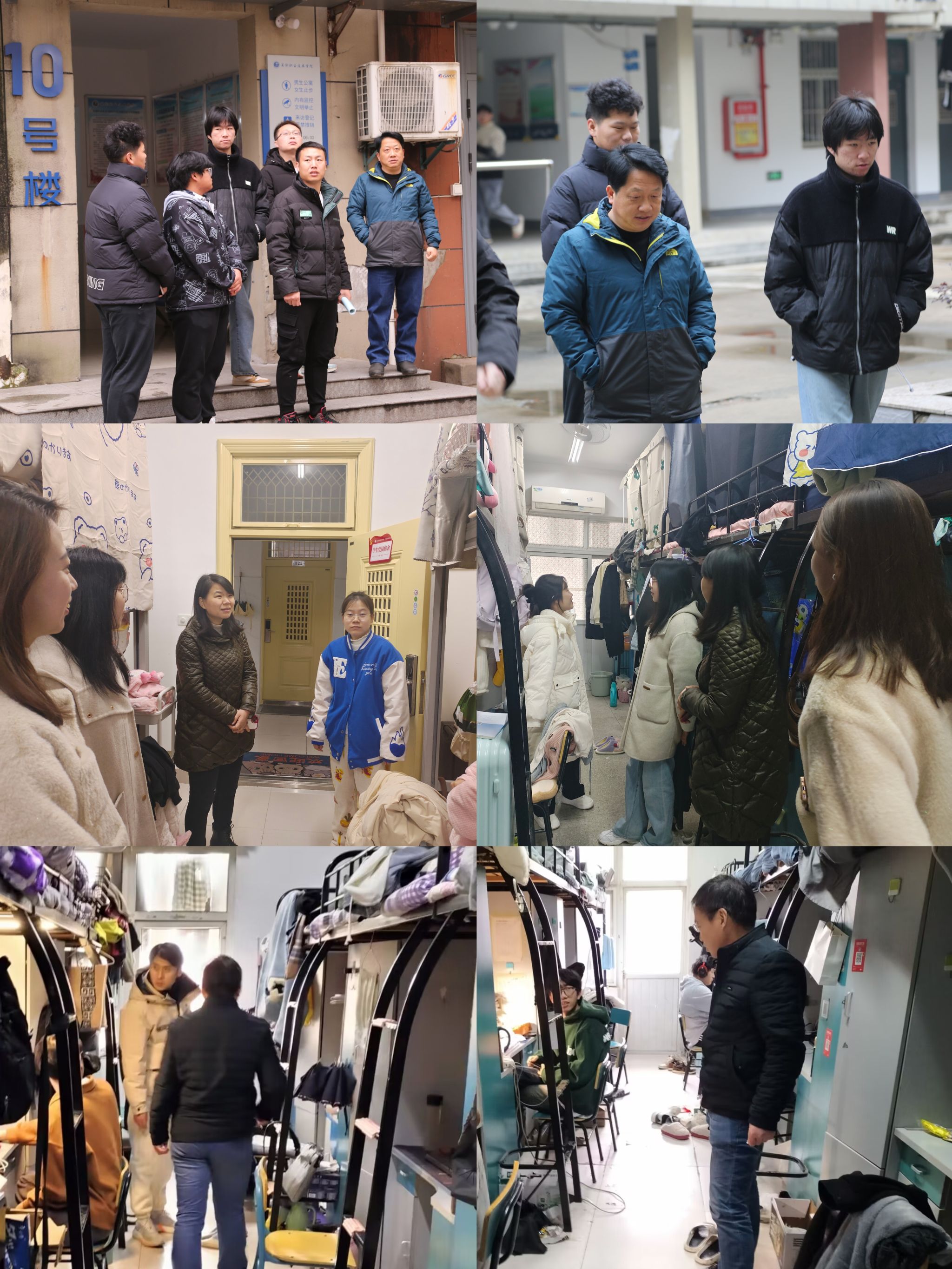 在走访过程中,学院领导重点查看了学生座谈会反映的宿舍问题处理情况及考研和毕业班学子的学习生活情况,针对发现的问题,现场联系总务宿管部门进行协调解决。老师与学生们近距离、亲切交流,认真询问同学们学习、生活状况以及临近期末的复习安排等情况。叮嘱同学们要有寝室生活的集体意识,遇到困难和问题及时和辅导员老师沟通,提醒学生务必要遵守宿舍管理规定,严禁在宿舍内违规使用电器以及乱拉电线,离开宿舍要关闭所有用电器,注意人身及财产安全,避免发生网络诈骗。同时,提醒学生们冬季要做好防寒保暖,保持良好生活习惯,共同营造良好的学习和生活环境。