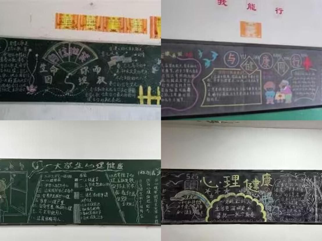 润心图腾 12月1日至14日,学院开展心理健康主题黑板报评比,黑板报以图文并茂的形式,介绍了心理健康知识、心理调适技巧、学习压力释放等内容,引起了广大师生的关注和思考。学生们通过阅读、参与互动,加深了对心理健康知识的了解。