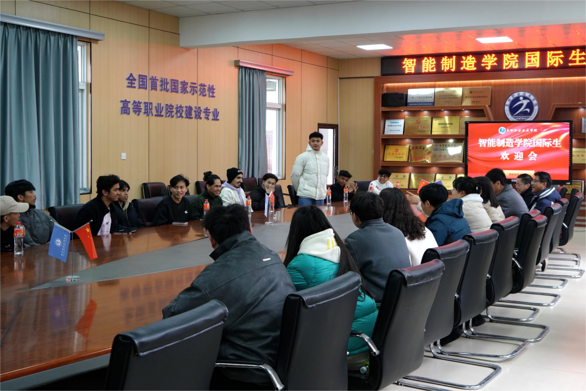 随着新学期的开启,智能制造学院迎来了一批来自摩洛哥、孟加拉国和印度尼西亚的国际生。为帮助国际生尽快熟悉适应智能制造学院的学习生活,2月26日上午,该学院在惟实楼208会议室召开2022、2023级国际生见面会。学院党政班子成员、国际教育管理学院学工科长、国际生班主任和2名中国学生及19名国际生参加了见面会。