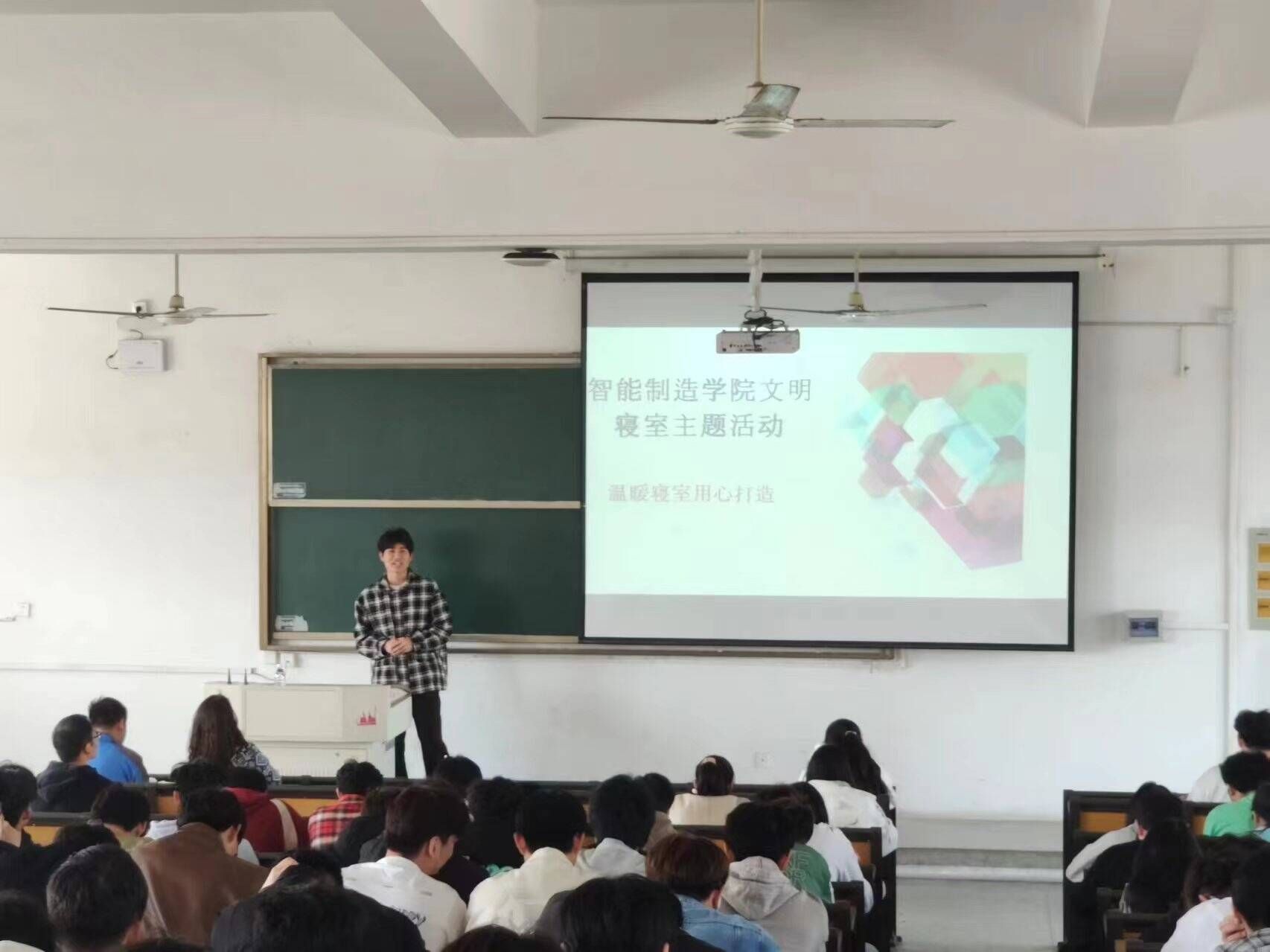 为了营造良好的宿舍环境,倡导和谐友爱的宿舍文化,增强学生文明意识,加强学生宿舍管理,3月29日,智能制造学院在银湖教学楼东三阶召开了“温暖寝室 用心打造”文明寝室创建活动,团委书记江晓、辅导员钱力、生活部全体成员、全体寝室长参加了活动。