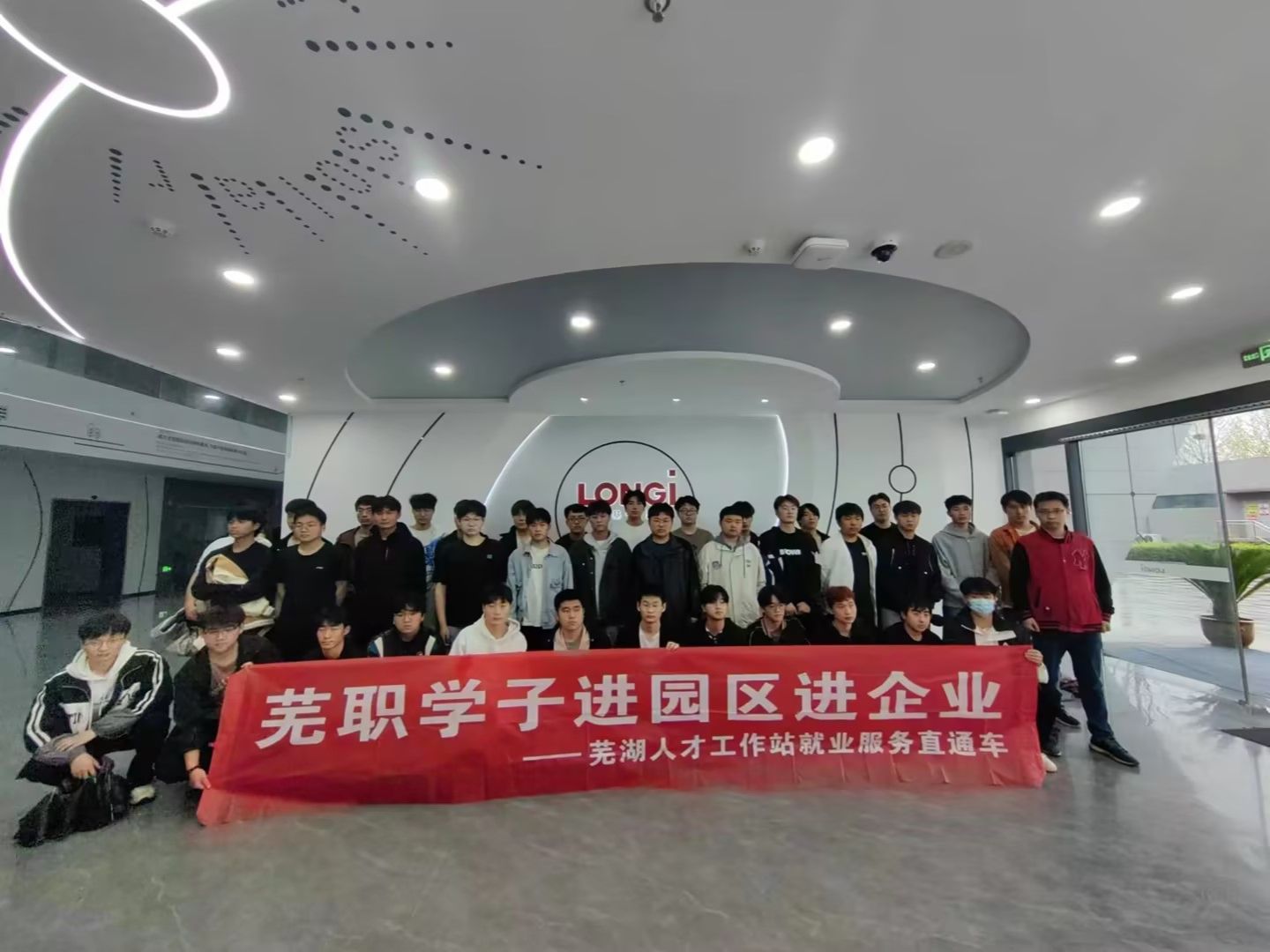 为深入了解企业情况,更好地推进芜湖隆基订单班后续工作,4月2日智能制造学院辅导员沈文带领22级芜湖隆基订单班同学赴芜湖隆基光伏科技有限公司参观交流。