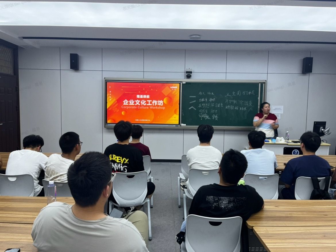 培训主管朱美美老师向学生们详细解读了定向培养计划,让学生们了解订单班的课程安排以及培养目标。随后,企文化主管茅汉玫和招聘主管曹元林两位老师围绕“改进创新、诚信敬业、协同协作、客户第一、主动有为、真实客观、开放包容、善待他人、引领成长”九大行为准则核心价值观,向学生们展示了隆基光伏的企业文化、企业发展现状、未来光伏发展前景,并与学生展开互动交流。