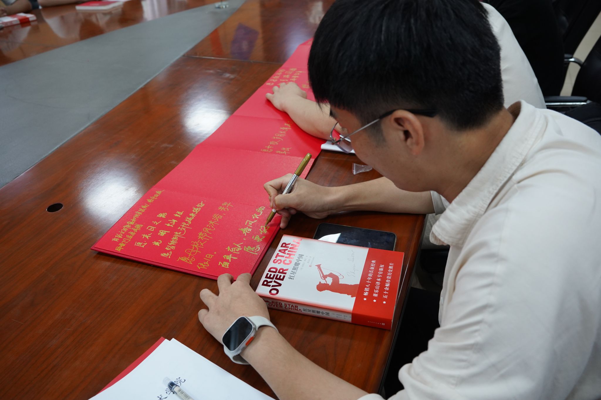 之后,全体毕业生党员给母校写下了深情寄语,学院党总支向毕业生党员发放党员徽章和书籍《红星照耀中国》作为留念礼物。党总支书记计荣对全体毕业生党员顺利完成学业、取得优异成绩,奔赴下一征程表示祝贺;向大家在大学期间为学院发展做出的贡献表示感谢;希望同学们坚定理想信念、勇担使命,在服务社会中实现人生价值,在不懈奋斗中书写人生华章。
