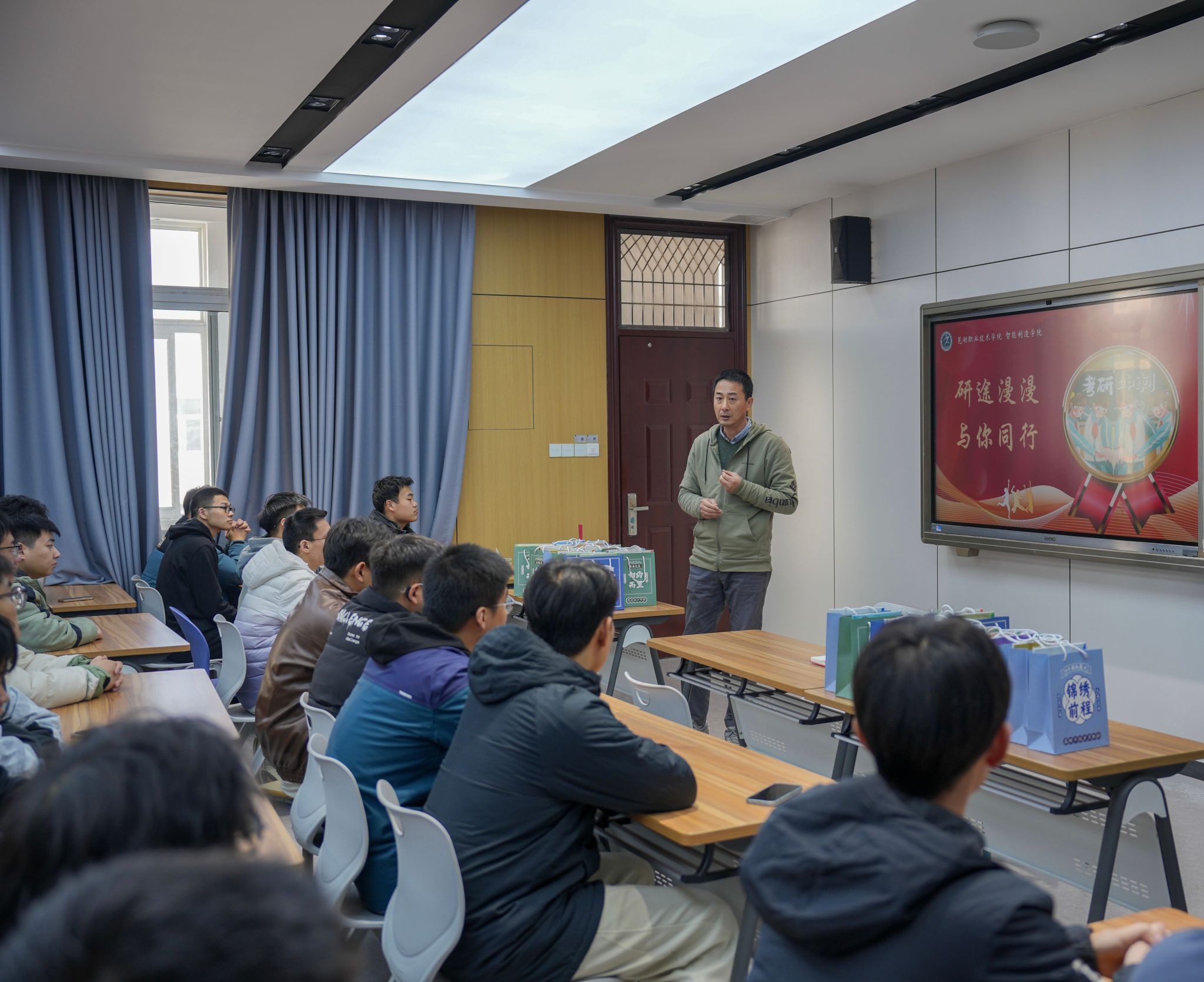 为鼓励考研学子积极迎考,坚定考研信心,缓解备考压力,11月28日,智能制造学院于惟实楼新多九教室为2025届机械设计制造及其自动化专业考研学生举办“研途漫漫 与你同行”考研慰问活动。智能制造学院党总支书记计荣、副院长朱强、辅导员王慧以及2025届考研学子参与此次活动,活动由王慧主持。