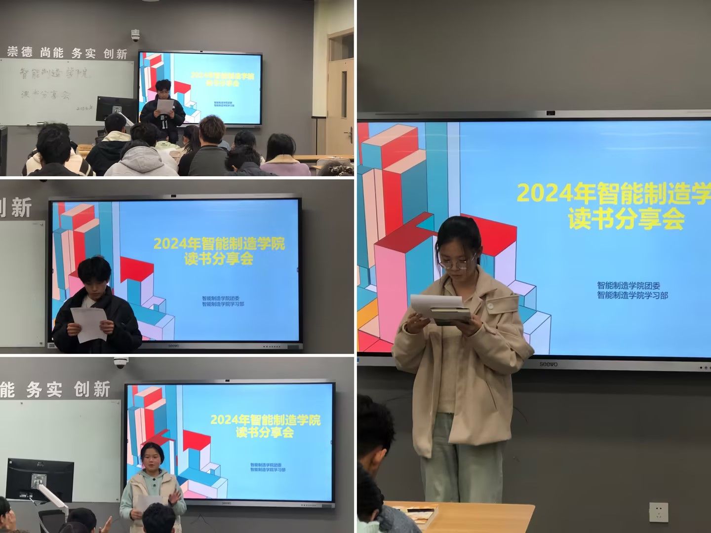 为了丰富校园文化生活,促进书香校园文明建设,激发学生阅读兴趣,11月29日智能制造学院在教学楼315举办了读书分享会活动,学院各年级、专业同学参加。