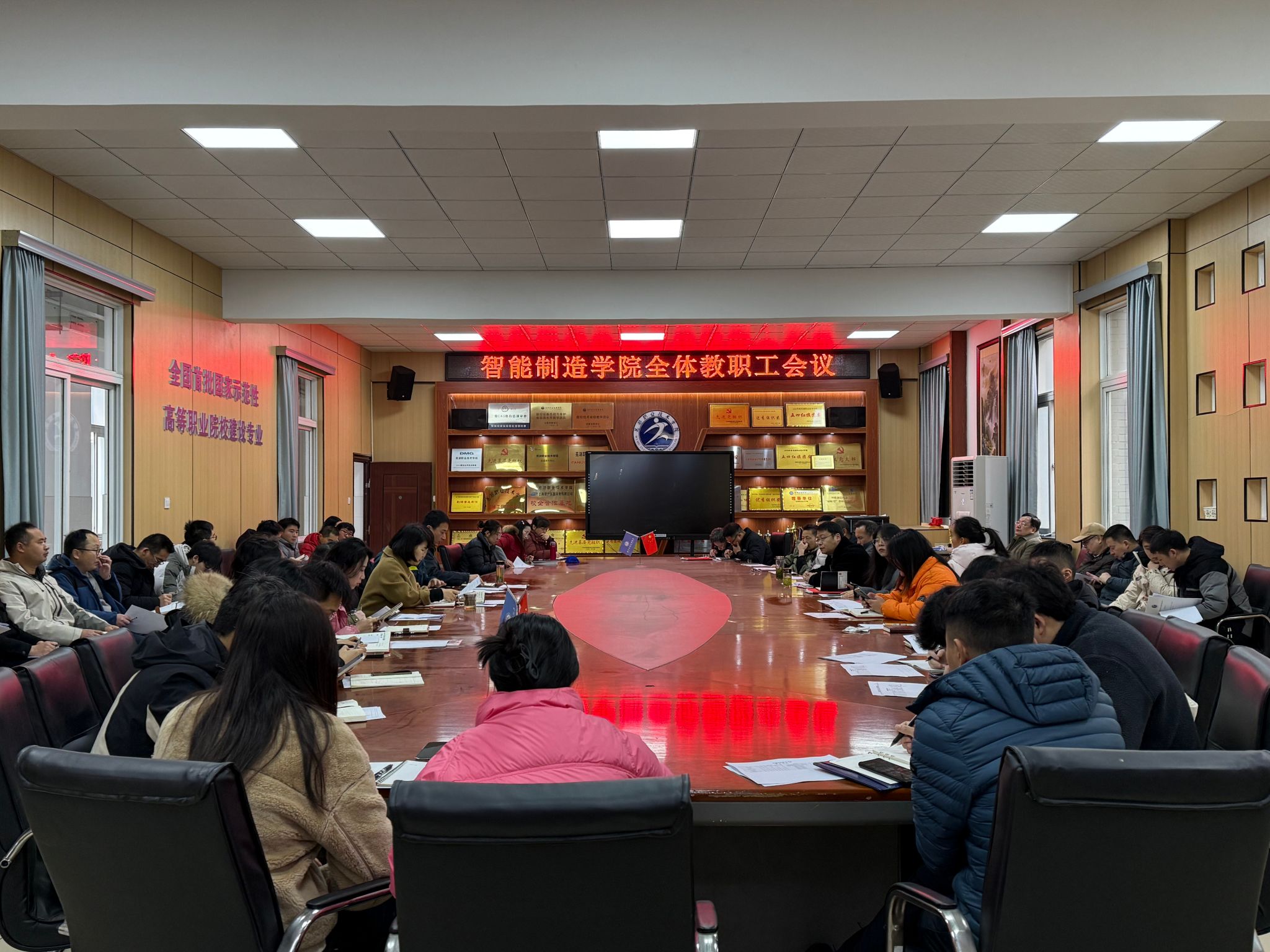 立足新起点,奋楫再出发,为提前谋划新学期学院发展思路,确保新学期开学工作平稳有序进行,2025年2月14日上午,智能制造学院在学院会议室召开2024-2025学年第二学期开学工作会议。学院党政班子成员及全体教职工参加会议,会议由院长戴晓东主持。