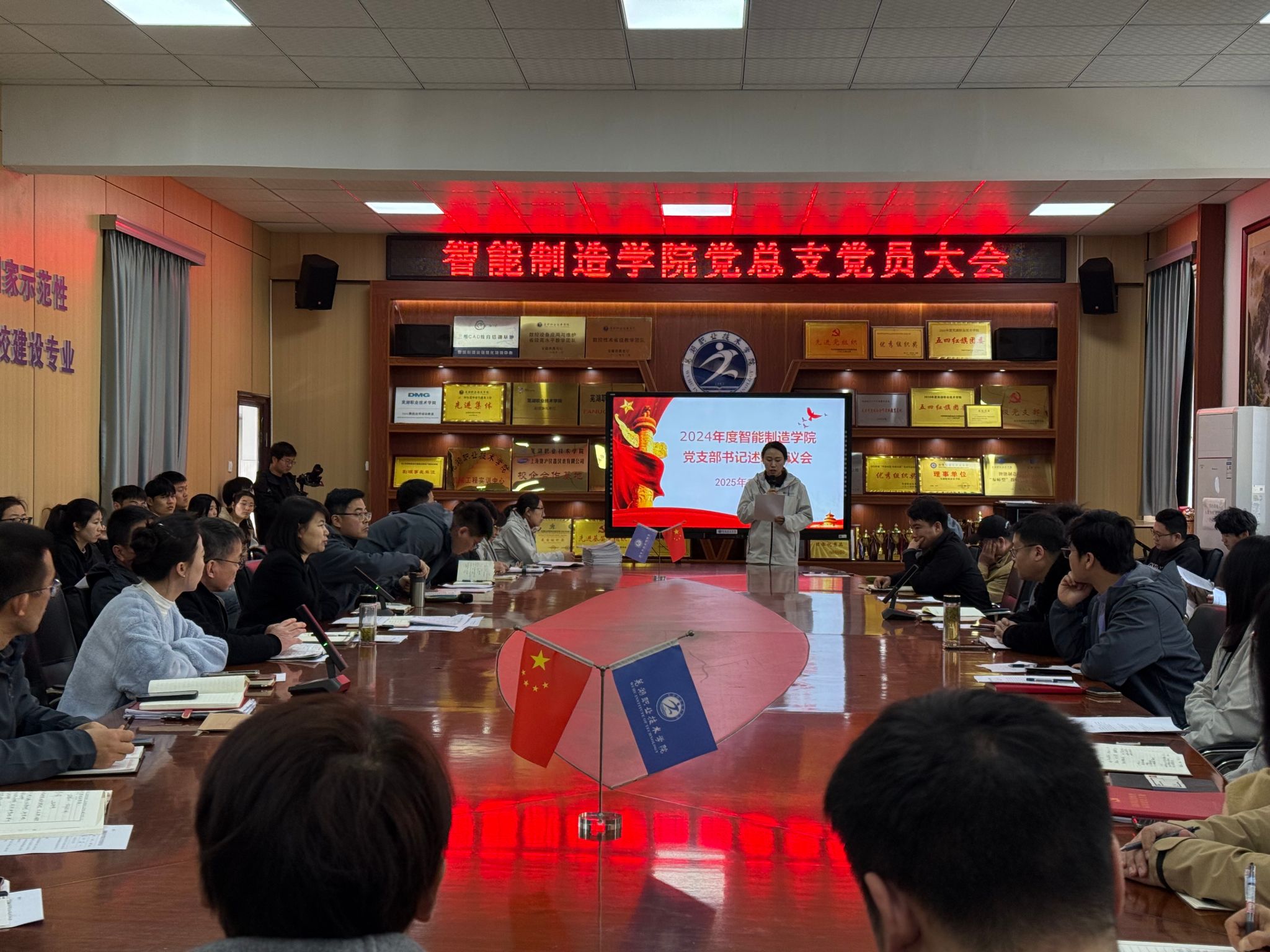 会议伊始,各党支部书记进行2024年度述职,全面总结2024年度支部工作。教工党支部书记胡俊前、学生第一党支部书记曹晓芹、学生第二党支部书记江晓分别代表支部委员会通报了2024年度组织生活会问题整改情况及本次组织生活会会前准备情况,并作班子对照检查,深入查摆问题、剖析原因,提出整改措施。各位党员立足岗位,随后,党员们逐一进行对照检查,开展批评与自我批评。学生党员结合自身在学业成绩、技能大赛和服务同学等方面的表现进行汇报,查找不足,明确改进方向。会议充分发扬党内民主,达到了“凝心聚力、团结奋进”的良好效果。