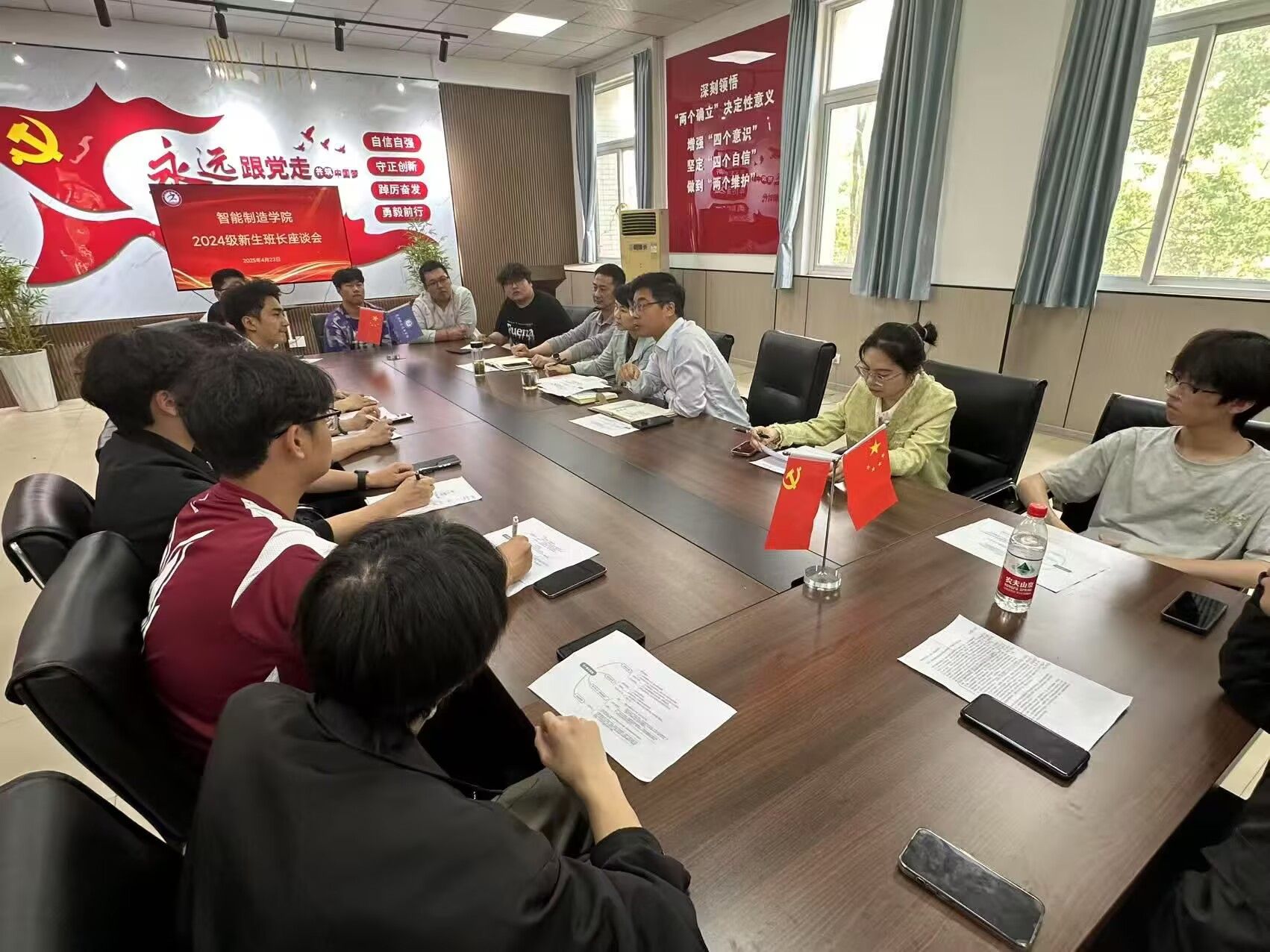 4月23日,智能制造学院在学院党员活动室召开2024级班长座谈会。学院党政班子成员,2024级专科班班长参加了会议。会议由团委书记夏云主持。