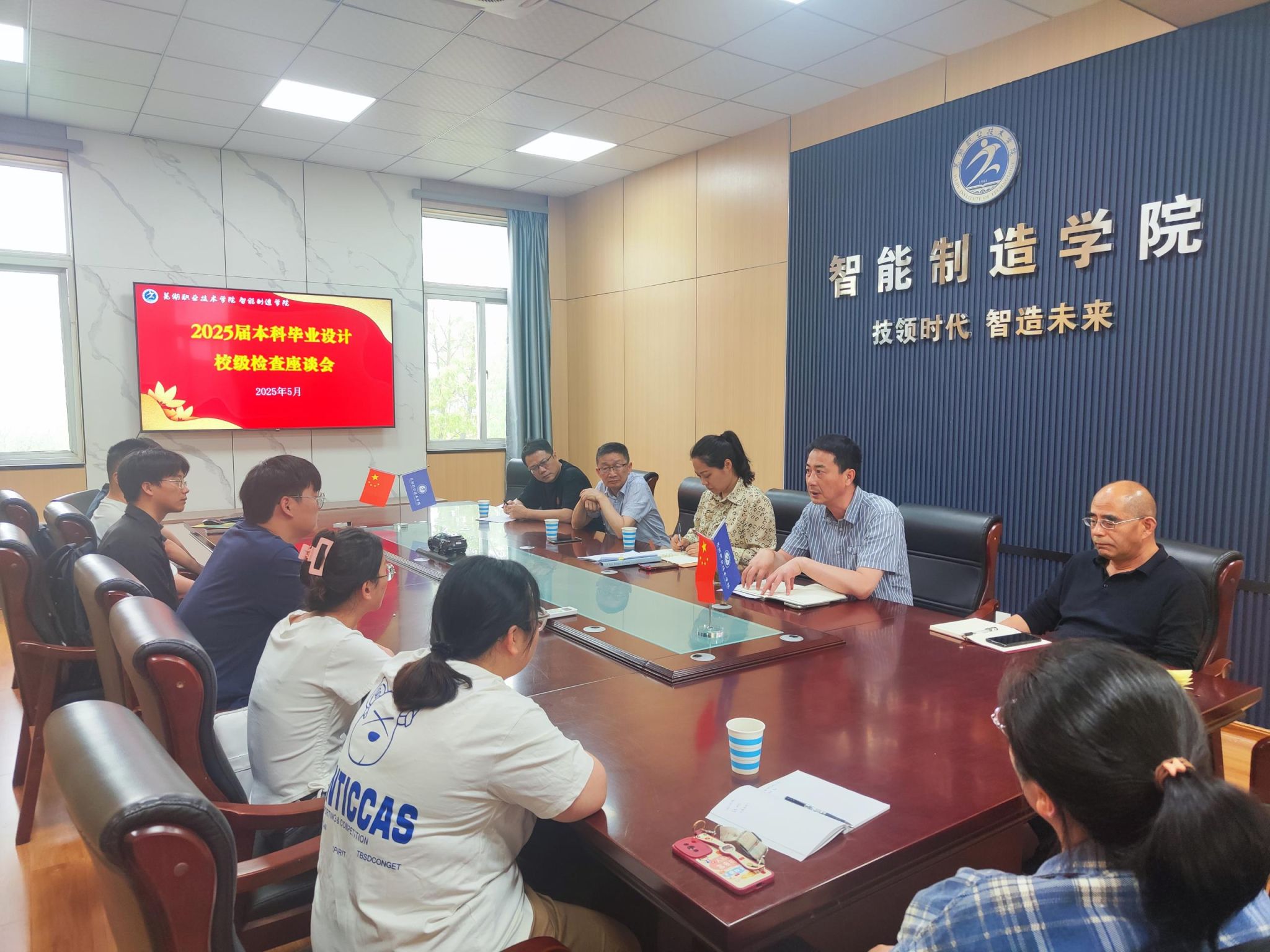 为贯彻落实《安徽工业大学本科毕业设计(论文)工作管理规定》文件精神,确保毕业设计(论文)工作高质量完成,5月15日,智能制造学院和电气与自动化学院联合召开了2025届本科毕业设计(论文)检查座谈会。教务处副处长方君、智能制造学院副院长朱强、电气与自动化学院副院长邓延安以及教务处科长孙勇出席本次会议,与10名学生代表进行了深入交流。