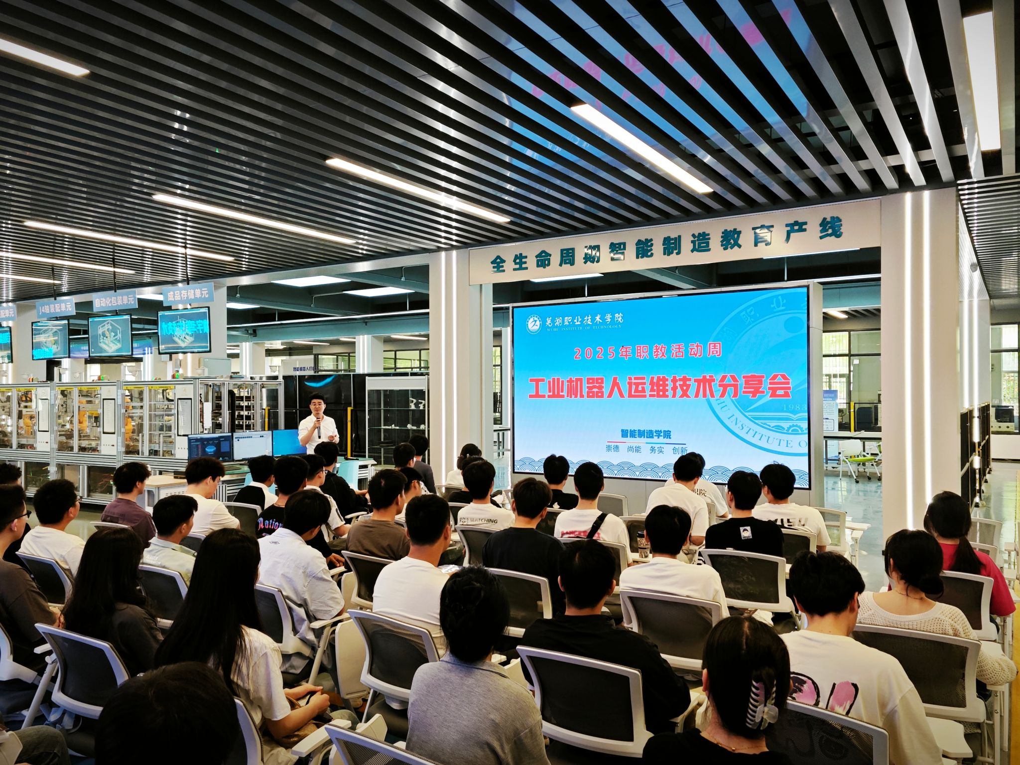 2025年5月16日下午,芜湖职业技术学院智能制造学院成功举办了工业机器人运维技术分享会活动。该活动作为职教活动周系列活动之一,吸引了众多师生参与,为大家带来了一场关于工业机器人及智能制造领域的知识盛宴。