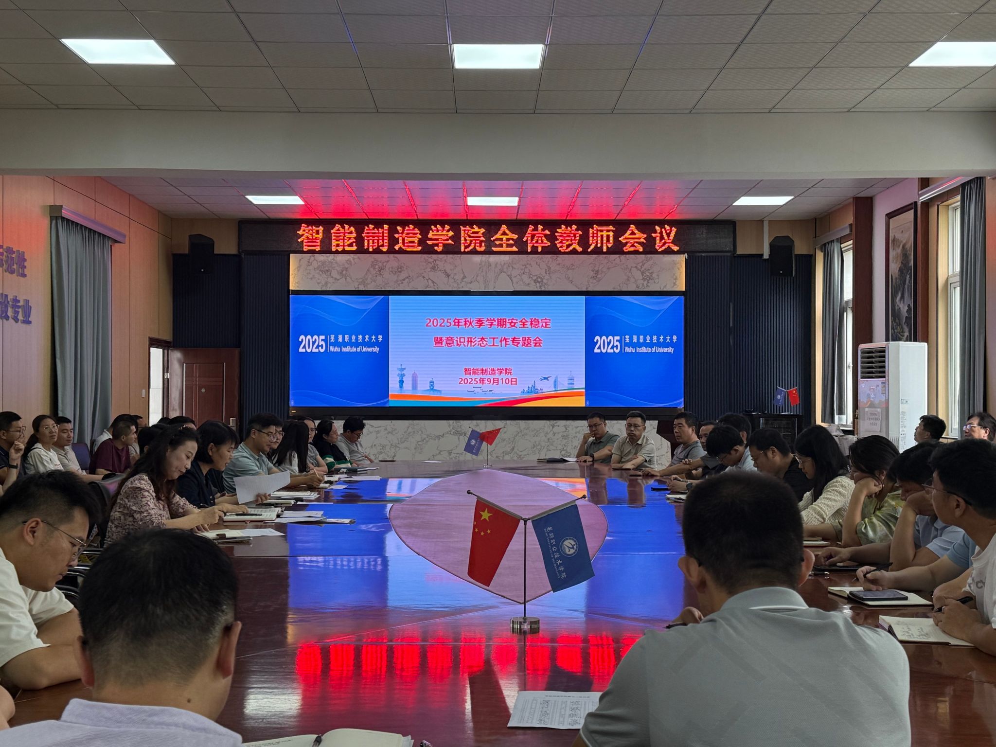 为深入贯彻落实学校安全稳定工作会议精神,全面强化校园安全管理,9月10日,智能制造学院召开2025年秋季学期安全稳定暨意识形态工作专题会议,传达上级文件精神,分析研判当前形势,部署下一阶段重点工作。学院党总支书记计荣主持会议并讲话,院全体教职工参加。