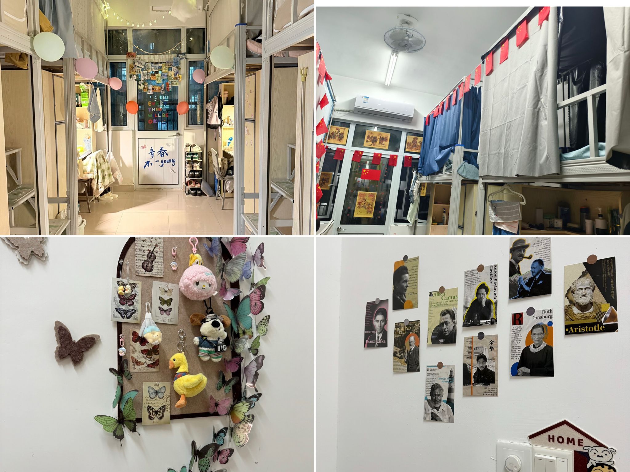本次宿舍文化建设月活动于10月正式启动,共有100余间宿舍踊跃参与。各宿舍以集体为单位,围绕“温馨、创意、和谐”的核心要求展开布置,在兼顾安全规范与卫生标准的基础上,充分融入团队巧思与个性特色。有的宿舍以“梦想起航”为主题,在墙面张贴梦想卡片与励志标语,打造了充满朝气的成长空间;有的主打“心怀祖国”理念,彰显了满满的爱国情结;还有的通过用自己喜欢的游戏文化与宿舍文化相结合的方式,体现了同学满满的创造感。
