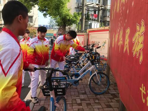 活动结束之际, 15名大学生志愿者们,在社区街道主动发起志愿活动,整齐摆放路边共享单车,认真清扫社区马路。