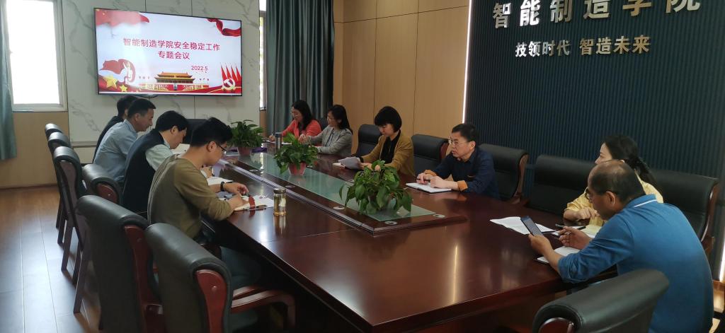 5月16日上午,智能制造学院在学院小会议室召开2022年安全稳定工作专题会议,会议由学院院长戴晓东主持,全体党政联系会成员参加了会议。