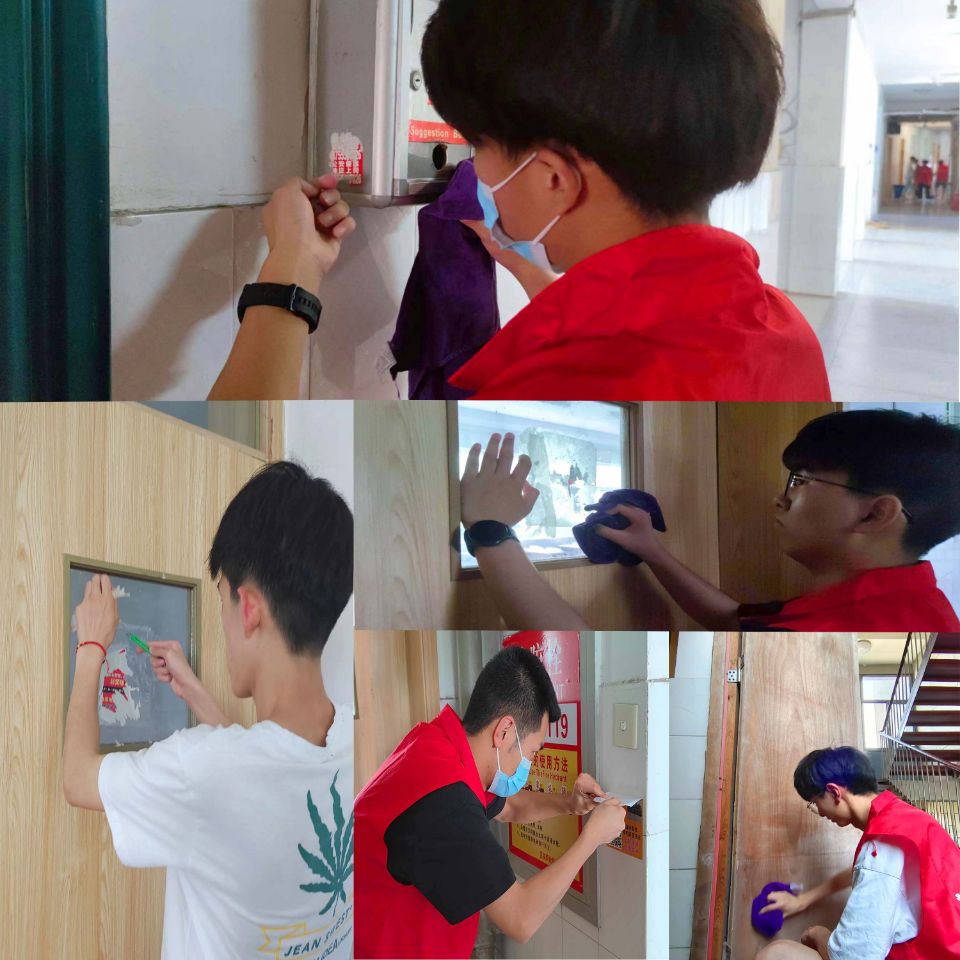 活动中,身着红色志愿者服的志愿者们手拿扫帚、簸箕,对教学楼教室、楼梯、走道等区域的垃圾、纸屑等进行清理打扫。对广告张贴、垃圾杂物、乱堆乱放等进行了全方位的清理,志愿者们不怕脏、不怕累,不遗漏任何一个角落,经过两个小时的大清扫,所见之处的环境面貌焕然一新,他们给我们展示的是大学生奉献、友爱、互助、进步的志愿精神。