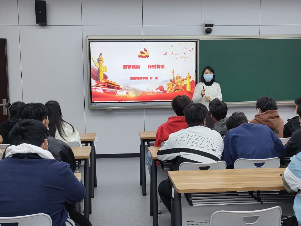 在党的二十大胜利召开之际,为引导青年学子做好大学规划,努力成长为堪当民族复兴重任的时代新人。10月19日,智能制造学院党总支副书记计荣以“志存高远、行则将至”为题,在惟实楼智慧教室为2022级机械设计与制造专业的创新招生学生上了一堂专题思政课。