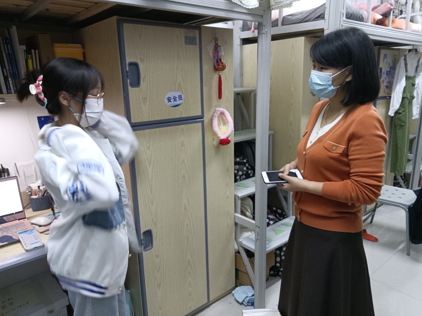 学院班子成员、学工队伍深入班级、宿舍和教室,向同学们普及相关防疫知识,强调现阶段疫情防控的紧迫性,引导全体学生提高自我防护意识,带口罩,不聚集,严格遵守校园防疫要求,积极配合学校各项防疫工作,认真落实健康打卡制度,积极配合工作人员做好测温、验码、核酸检测以及活动轨迹摸排等防控工作,不发布、不传播、不评论未经证实的消息,严禁擅自离校,为守护健康平安校园做贡献。同时,学院积极转变工作思路,强化线上思想政治教育阵地建设,加强与学生的网上互动交流,通过网络对学生进行一对一或一对多的思想引领、宣传教育,“网连网”保证网络思想政治教育不断线。